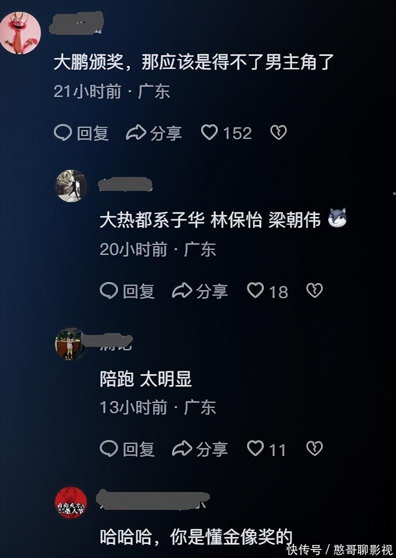 大鹏一登台受奖,就有不雅众断言:他既然来受奖,就意味着得奖泄劲,陪跑了!