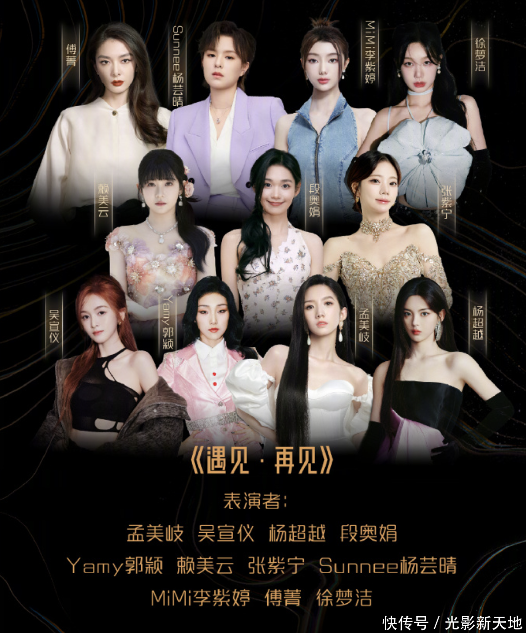 《碰见·再会》这个相通,亦然按照成本认同的咖位来排序嘉宾名字的孟好意思岐、吴宣仪、杨卓越、段奥娟位列前四,也放在第一滑,背面两排的艺东谈主基本客岁一年王人没几许声息,是以网友相通度最低的傅菁、徐梦洁排在终末。