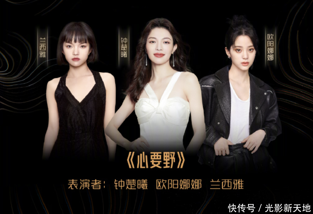 《心要野》这个一样,名字是按照咖位排序,钟楚曦、欧阳娜娜和兰西雅,但是放的像片可不是按照名字端正排,最大咖的钟楚曦在中间的C位。怎样样,主持方看咖位作念物料的格调昭然若揭吧?